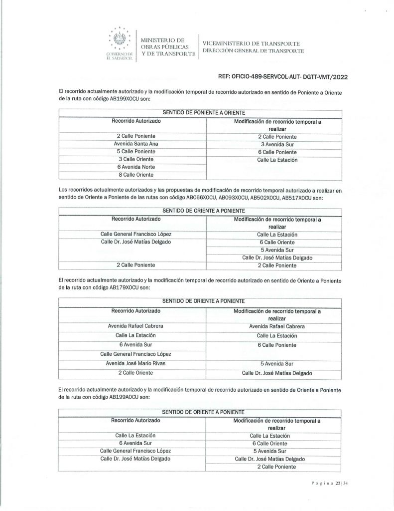Modificación temporal de recorridos y paradas de las rutas AB110A0SV, AB110X0SV, AB111X1CA, AB111A0CH, AB111X0CA, AB112A0CA, AB112B0CA, AB112B1CA, AB112X0CA, AB116X0SV, AB116X1SV, AB142X0CA, AB176D0SV, AB176X0SV, AB181A0CA, AB181X0CA, AB198A0CU, AB302C0CU, AB303A0US, AB303X0US, AB304D0UN, AB304E0UN, AB304X0UN, AB304X1UN, AB306D0UN, AB306X0UN, AB306X1UN, AB311X0US, AB346D0UN, AB346X0UN, AB346X1UN AB411X0SV, AB446X0UN, AB499X0SV, AB501A0SV, AB501X0SV, AB501X1LP, AB507A0CA, AB511X0SV, AB518X0CA, AB533X0CU, AB113X0CU, AB113XECU, AB426A0CU, AB426X0CU, AB510A0CU, MB113X0CU, MB113X3CU, AB066X0CU, AB093X0CU, AB199A0CU, AB199X0CU, AB502X0CU, AB516X0CU, AB186B0CU, AB186X0CU, AB510X0CU, AB517X0CU, AB630X0CU, AB114X0CU, AB175A1CU, AB175X1CU, AB179X1CU, AB515A0CU, AB515X0CU, AB515X1CU, AB517A0CU, AB577A0CU, MB001X0CU, AB198X0CU, AB500X0LP, AB500X1LP, MB001X0SV, AB637X0CU, AB113X0CU, AB113XECU, AB426A0CU, AB426X0CU, AB510A0CU, MB113X0CU, MB113XECU