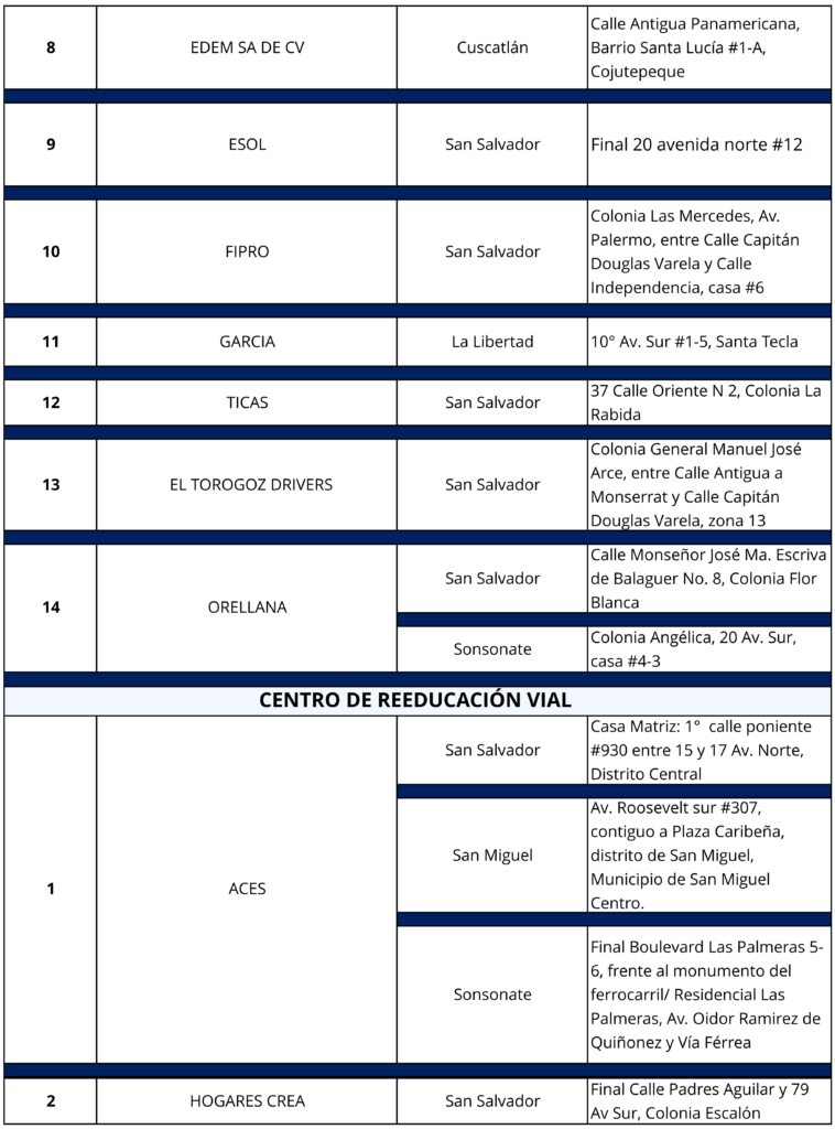Empresas Examinadoras, Centros de Reeducación Vial y Escuelas de Manejo
