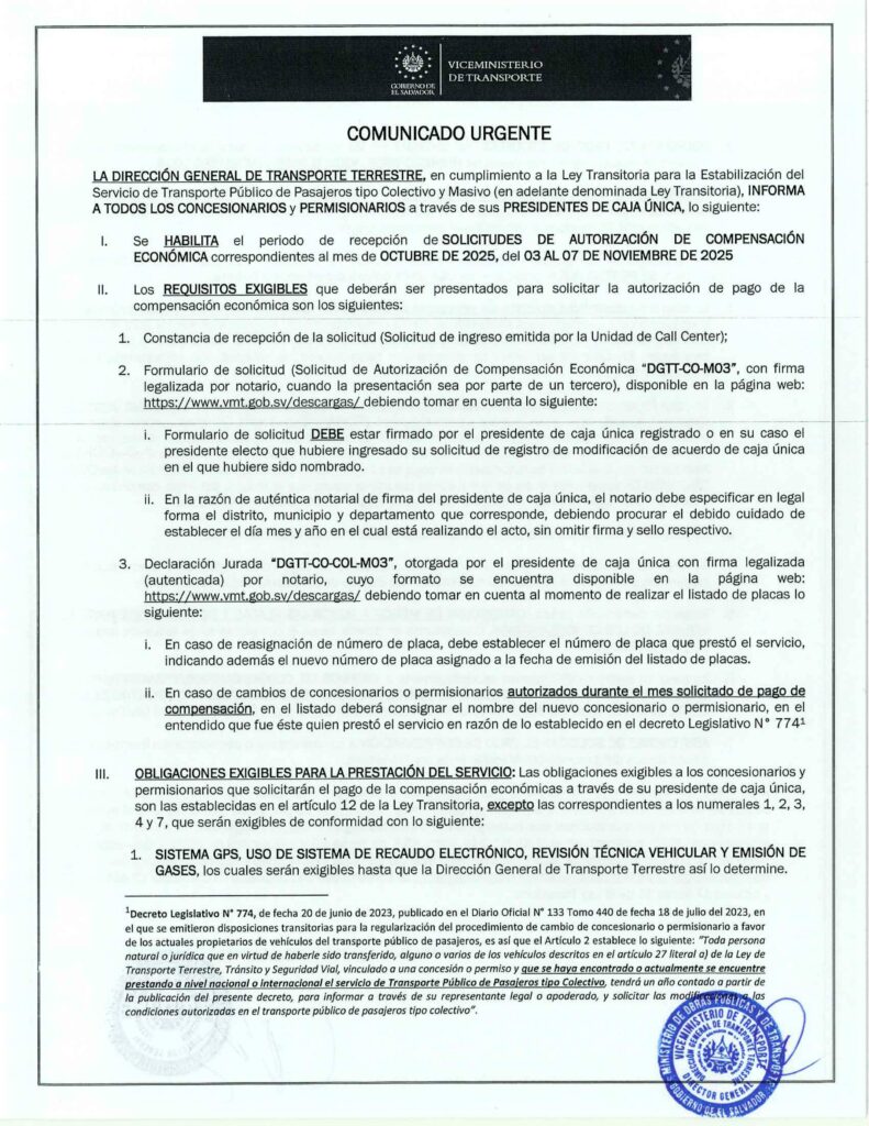 Inicio > Noticias > Recepción de Solicitudes de Autorización de Pago de Compensación Económica OCTUBRE 2025