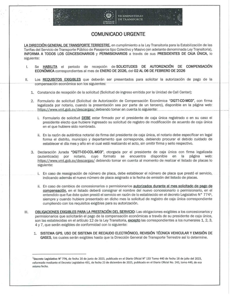 Inicio > Noticias > Recepción de Solicitudes de Autorización de Pago de Compensación Económica Enero 2026